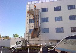 | Our steel & wood heavy duty debris trash chutes are perfect for moving materials to the ground in an efficient and safe manner. The 4'x4' system can be fine-tuned to each unique situation and application. Click on the pictures below for enlarged views. |